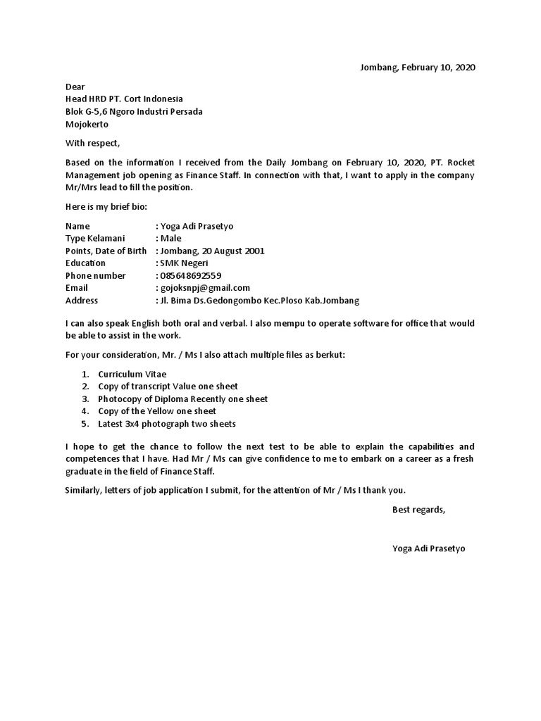 Adam, penulis petunjuk praktis menulis surat lamaran kerja berbahasa inggris. Hal ini penting agar dapat menarik pihak perusahaan sehingga dapat berlanjut pada tahap seleksi selanjutnya. Contoh contoh cover letter fresh malaysia viral story facebook. Nah, buat para fresh graduate yang masih awam, ada beberapa hal yang mesti kamu perhatikan ketika mencari pekerjaan. Highly motivated recent graduate of marketing with a gpa of 4.5 from the national university of singapore.